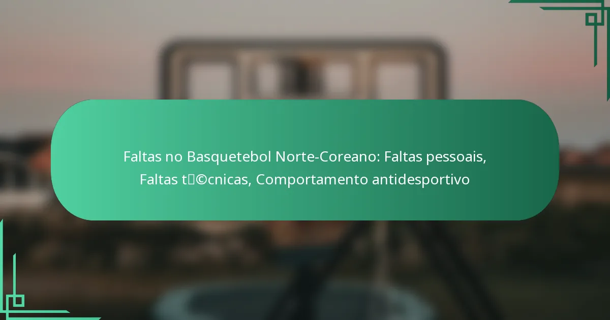 No basquetebol norte-coreano, as faltas desempenham um papel crucial na manutenção da integridade do jogo. As faltas pessoais envolvem contacto físico ilegal, enquanto as faltas técnicas estão associadas a comportamentos antidesportivos e violações de regras. Compreender estas faltas é essencial para jogadores e fãs, pois podem influenciar significativamente o resultado dos jogos e o espírito geral da competição.